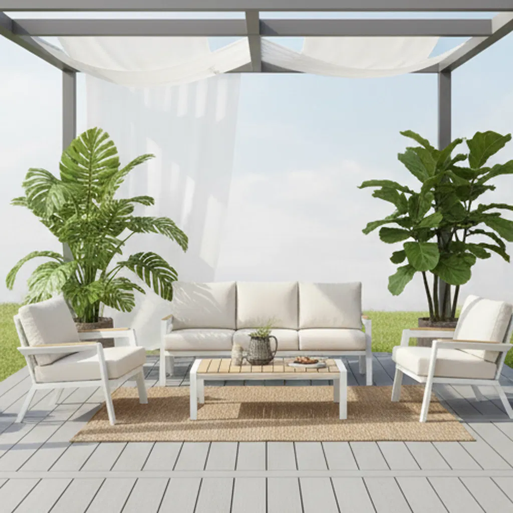 Product name : Yn9015 Modern Luxury Hotel Home Outdoor Sofa Garden Patio Rope Dining Chair and Table Set Aluminum Furniture