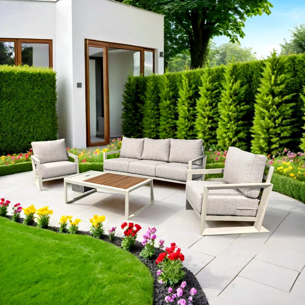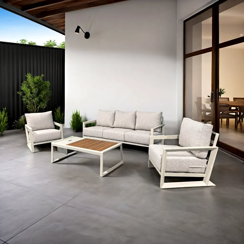 Products > outdoor furniture > outdoor furniture > Yn9012 Modern Patio Garden Outdoor Furniture Aluminum Hotel Sofa Set with Ice Box Table